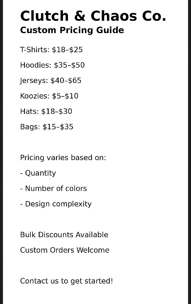 Customize your chaos • Show up clutch • Custom gear made for you